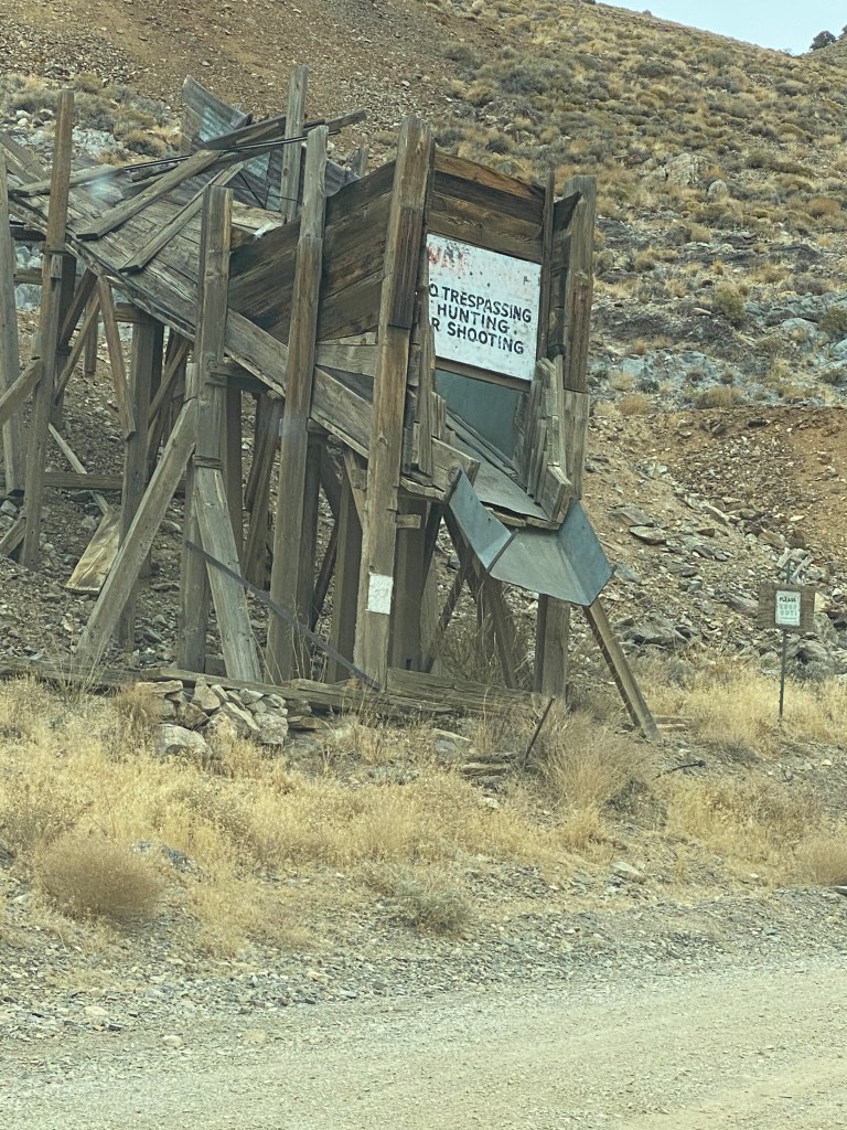 After asking the receptionist at the Camp RV check-in, who endorsed it as a fun experience, we took off, excited to experience a visit to a ghost mine and the period buildings. A ghost mining town sounded interesting to explore and the picturesque mountains beckoned. The paved road to the turnoff seemed to be what we would expect, however, WHAT???, we were faced with a dirt road and No Trespassing signs we pressed ahead. Afterall, why would it be advertised in the RV Site brochure if it was private?